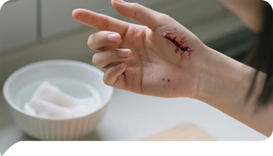 厨房切菜时不慎被刀划伤,伤口残留污渍难以清理