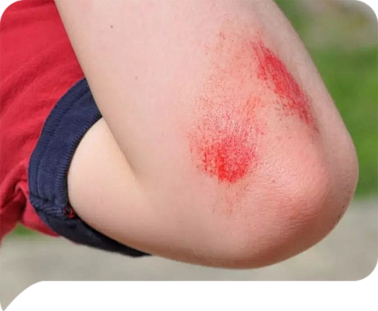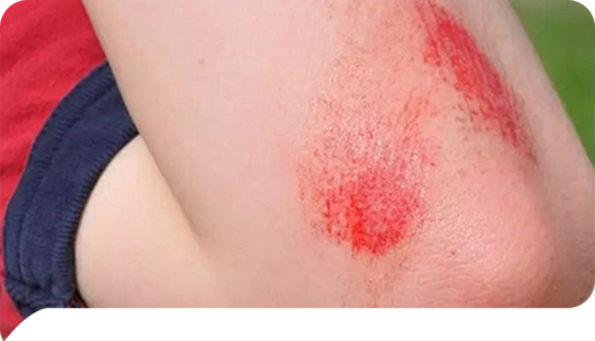 孩子玩耍时擦伤膝盖伤口表面灰尘泥沙污物难以清洗